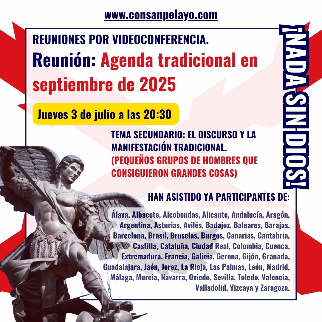 Enlace a sala San Pelayo (20:30) https://meet.google.com/ogw-wqsu-ait Textos 987: Finalidad y algunas características interesantes de los círculos tradicionalistas. - https://consanpelayo.com/index.php/sin-categoria/2026/01/29/finalidad-y-algunas-caracteristicas-interesantes-de-los-circulos-tradicionalistas/ A continuación se ponen sólo unos pocos enlaces (Se intentará…