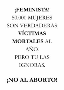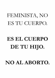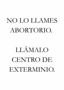- Si aparece la palabra aborto en el cartel, la persona ya puede empezar mentalmente con toda la bazofia mentirosa que le han inoculado: es un derecho, bla, bla, bla.