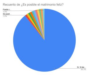 - 93 de 106 personas responden a esta pregunta: ¿Es posible el matrimonio feliz? Respuesta: Si. Si bien sin la ayuda de Dios (Eucaristía frecuente, la confesión, la oración…) puede ser complicada la felicidad.