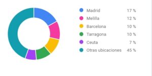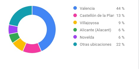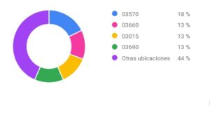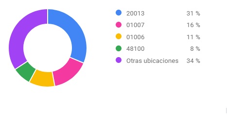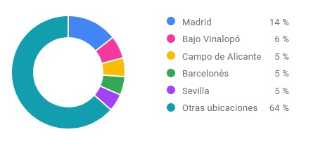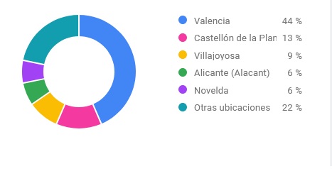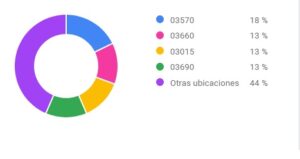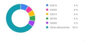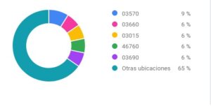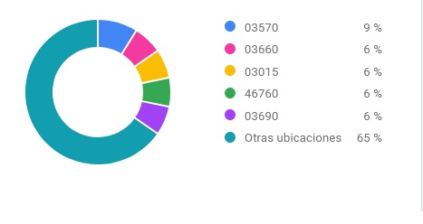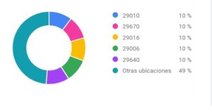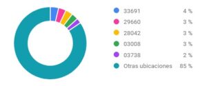Es interesante ver que a veces se menciona un sitio en el gráfico y 96% sale vacío, esto se refiere a que hay un porcentaje significativo en tal ciudad y el otro trozo del quesito se distribuye dentro de la provincia o en el ámbito que se ha sacado ese valor relativo.