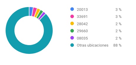 También es interesante ver como hay sitios como Salamanca que no tienen un % aparente de búsquedas, o lugares como Huelva.