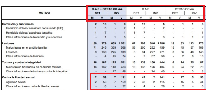 - OTRAS CC.AA.: Otras Comunidades Autónomas. En algunas tablas se desglosa por procedencia geográfica dentro de España, separando ciertas comunidades (por ejemplo, con policías autonómicas propias como Cataluña o País Vasco) de las “otras CC.AA.” gestionadas principalmente por Policía Nacional y Guardia Civil.