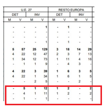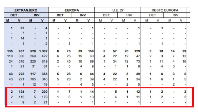 - EUR (al final): Probablemente Europeos (extranjeros de la Unión Europea o europeos en general), como subcategoría dentro de extranjeros.