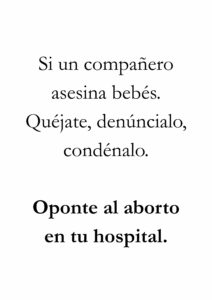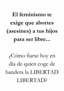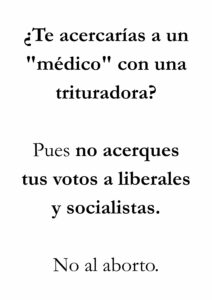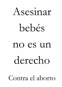 • Si aparece la palabra aborto en el cartel, la persona ya puede empezar mentalmente con toda la bazofia mentirosa que le han inoculado: es un derecho, bla, bla, bla.