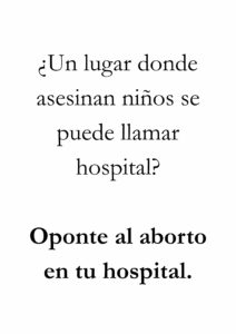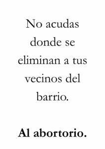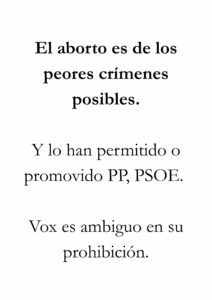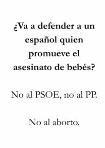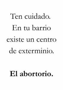 • Si aparece la palabra aborto en el cartel, la persona ya puede empezar mentalmente con toda la bazofia mentirosa que le han inoculado: es un derecho, bla, bla, bla.